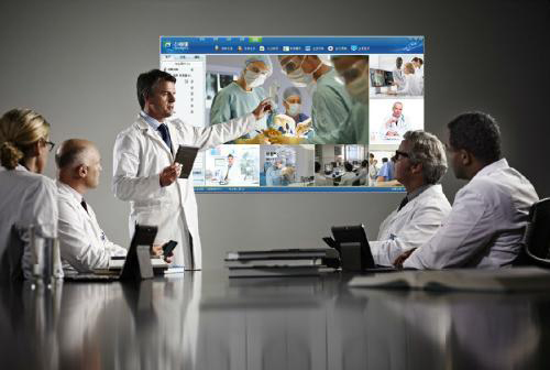 醫(yī)療領(lǐng)域,迄今為止一直得到國家的高度重視,遠(yuǎn)程醫(yī)療不再遙不可及。視頻會議系統(tǒng)實現(xiàn)了不同醫(yī)療機(jī)構(gòu)間的會診以及遠(yuǎn)程指導(dǎo)醫(yī)務(wù)人員進(jìn)行高難度的醫(yī)療工作等, 且不同水平的醫(yī)療資源得到了整合。醫(yī)務(wù)人員可以通過系統(tǒng)遠(yuǎn)程傳輸圖像,實時監(jiān)控病人的情況。除此之外,通過視頻會議系統(tǒng)還可實現(xiàn)對醫(yī)務(wù)人員或者實習(xí)生進(jìn)行手術(shù)指導(dǎo)、經(jīng)驗分享等工作,對加強(qiáng)醫(yī)療團(tuán)隊的整體素質(zhì)有著很大的幫助。視頻會議系統(tǒng)這一先進(jìn)技術(shù)的引入,讓我國醫(yī)療水平得到了有效的提升。